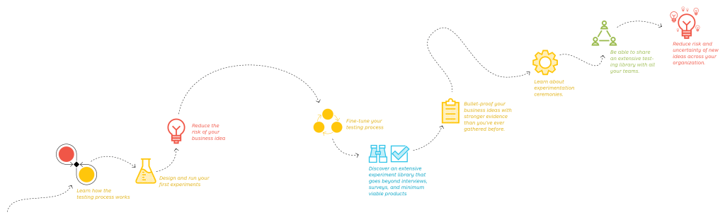 Le Testing Business Ideas a, quant à lui, pour objectif de compléter ces deux précédentes démarches en proposant une méthode pour tester rapidement et efficacement les idées business, de manière contrôlée et structurée, tout en diminuant rapidement l’incertitude et le risque liés à cette idée en faisant intervenir le client/utilisateur le plus rapidement et pertinemment possible.
